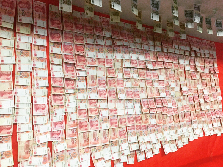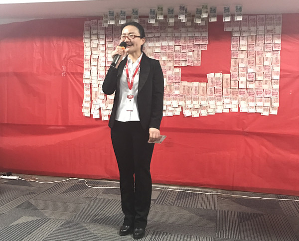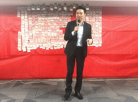 2017年4月6日下午,和协集团月总结大会在汇金国际金座19楼会议室如期召开。踏进会议室的第一步,小编再次被墙上红彤彤的人民币所吸引,与上次不同的是毛爷爷的排列方式,毛爷爷的张数也更多了,显得特别厚实,看来3月业绩又破新高了!