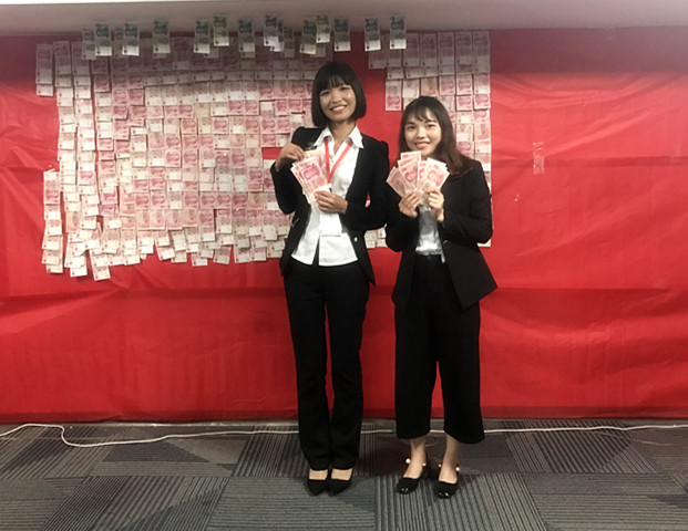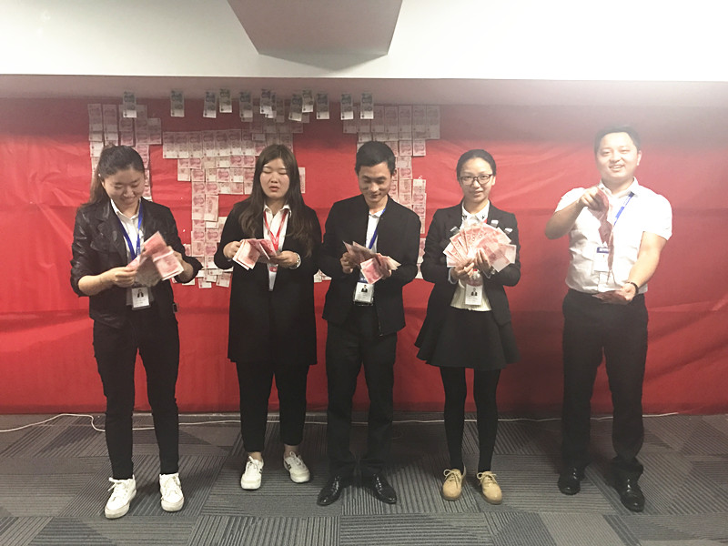 三月,大家不仅仅超额完成月度目标,更创下历史峰值,续写灿烂篇章。其中吴佳、罗雨蓉、钱玉兰、刘佳玲、周威、刘婷、黄启柏等多位销售精英表现突出,获得丰厚的现金奖励。大家拿着手中厚厚一叠的奖金,喜笑颜开。(小编猜想,摘取现金的时候心里肯定爽歪歪~小编可是上去过了把瘾滴……)