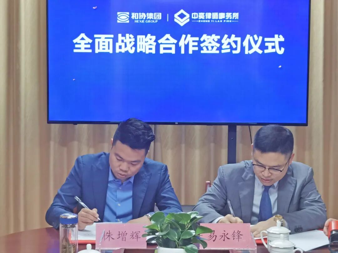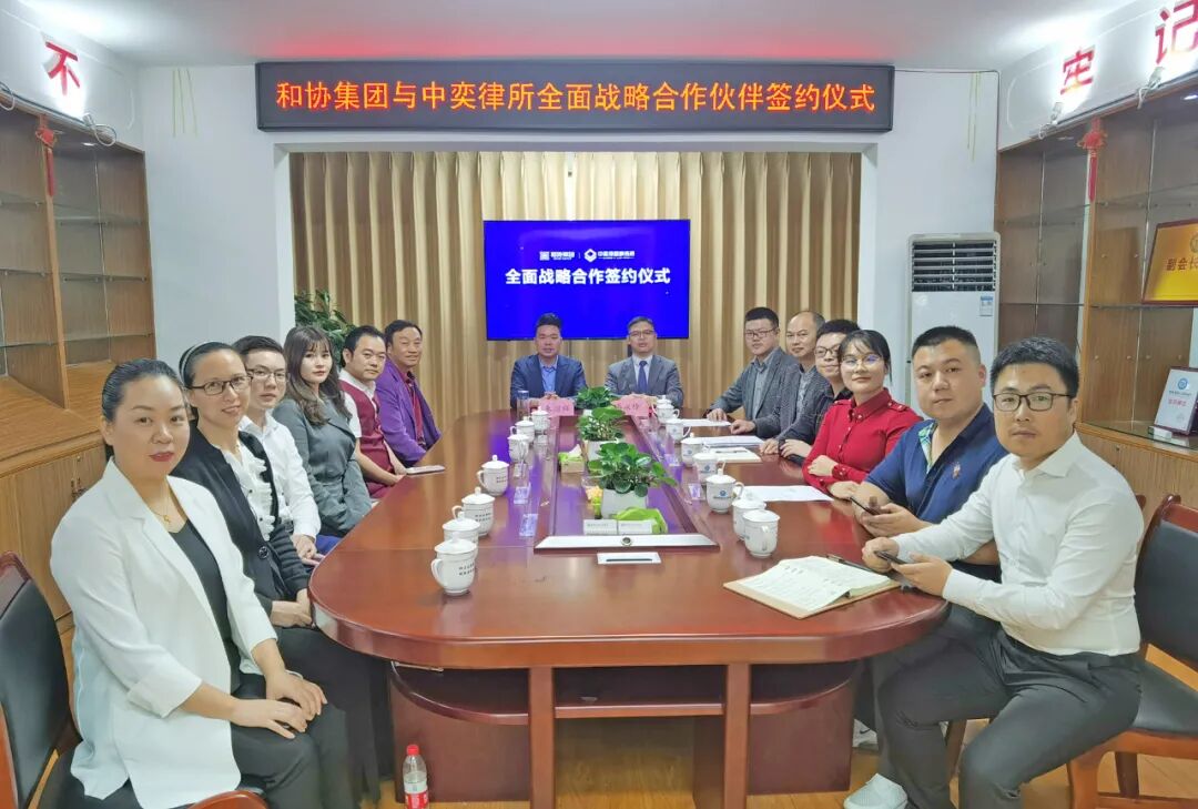2020年10月11日,和协集团与中弈律师事务所全面战略合作签约仪式在省商标品牌协会会议室举行。和协集团创始人、董事长、湖南省商标品牌协会会长朱增辉与湖南中奕律师事务所易永锋主任举行了会谈并参加了签约仪式,省商标品牌协会胡志新秘书长、综合事务部刘奋羽主任,和协集团常务副总裁周银春、副总裁朱芳、副总裁杜岭、副总裁陈艳、企划中心总监宋秀耀及中弈律师事务所副主任刘志德、合伙律师李永力、常维、康丹出席了本次会议。